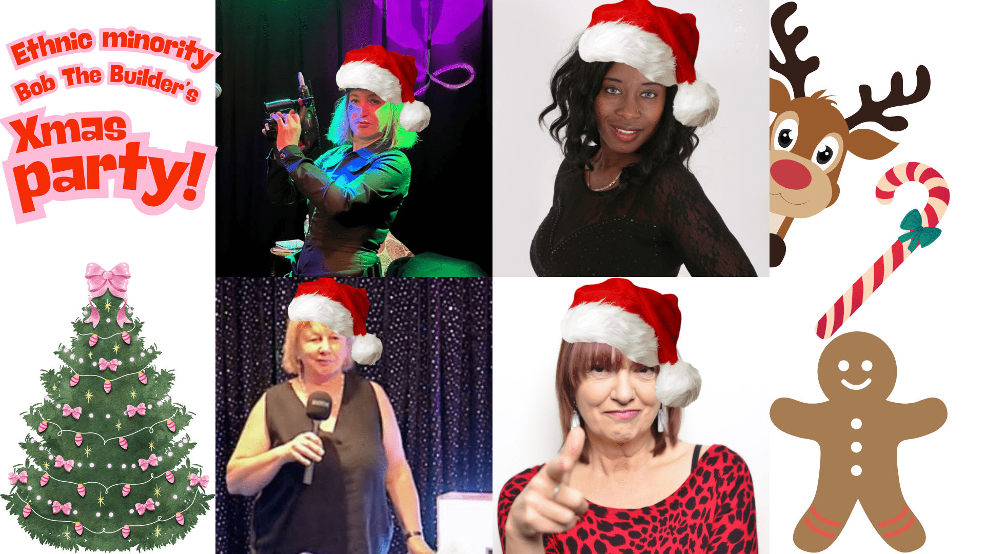 Ethnic Minority Bob the Builder is having X-mass party with her mates. She is so excited as this is part of integration of British way of living as she passed her Life in the UK test. She wants to celebrate this and X-mass party is a perfect way of doing this with the real English folks and she wants the to have test too; she is prepared with questions and surprise prices to match. High energy full of fun activities with clowning, stand-up comedy and poetry.