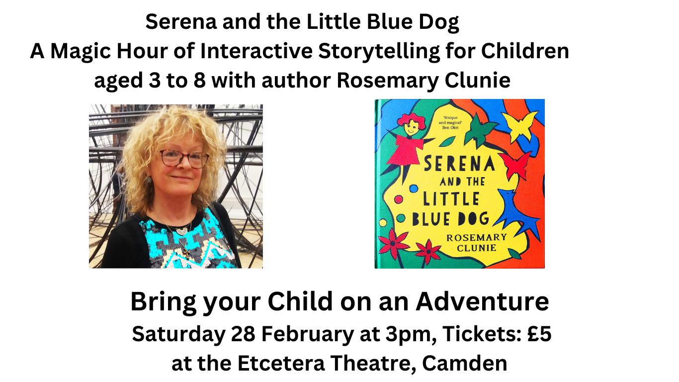 Serena and the Little Blue Dog Bring your Child on an Adventure, a magic hour of interactive storytelling, with writer, storyteller and artist Rosemary Clunie