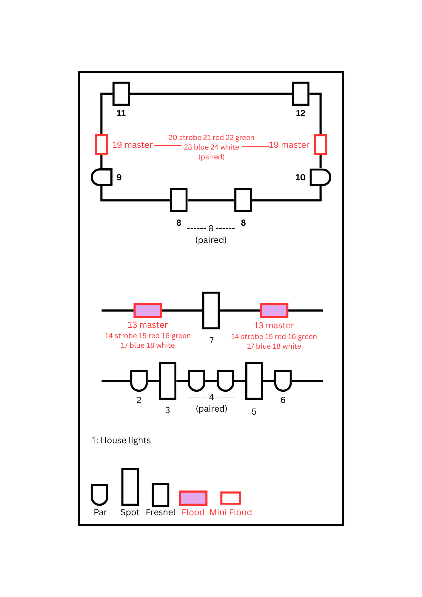 FOH PAR cans and profiles (warm wash & specials)